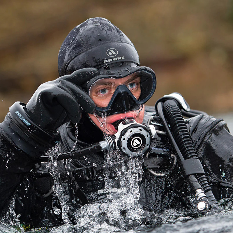 Maska Za Potapljanje Apeks VX1 je prva maska brez okvirja, ki se popolnoma prilega obrazu. Napredna geometrija silikonskega krila je zasnovana tako, da zmanjša točke pritiska na obraz med dolgotrajnimi potopi, kar zmanjša utrujenost. Zaponke za hitro sprostitev z valjčkom iz nerjavečega jekla, omogočajo enostavno prilagajanje, tudi z uporabo neoprenskih rokavic. Maska za potapljanje VX1 je na voljo v črnem, sivem ali belem silikonu, ter vključuje izbiro ekskluzivnih leč Pure View ali UV Cut za optimalno vidljivost v vseh pogojih.
