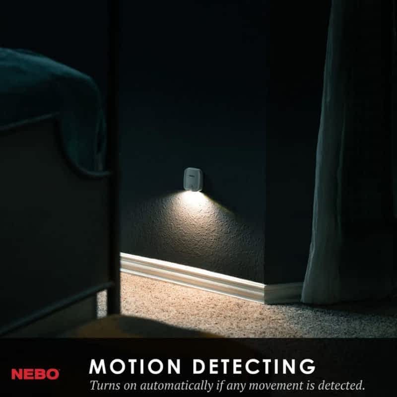 Pametna in elegantna NEBO Motion Sensor Light se samodejno vklopi ob zaznavi gibanja in izklopi po 15 sekundah. Idealna za hodnike, omare ali stopnišča. Enostavna montaža brez orodja – priložene baterije!