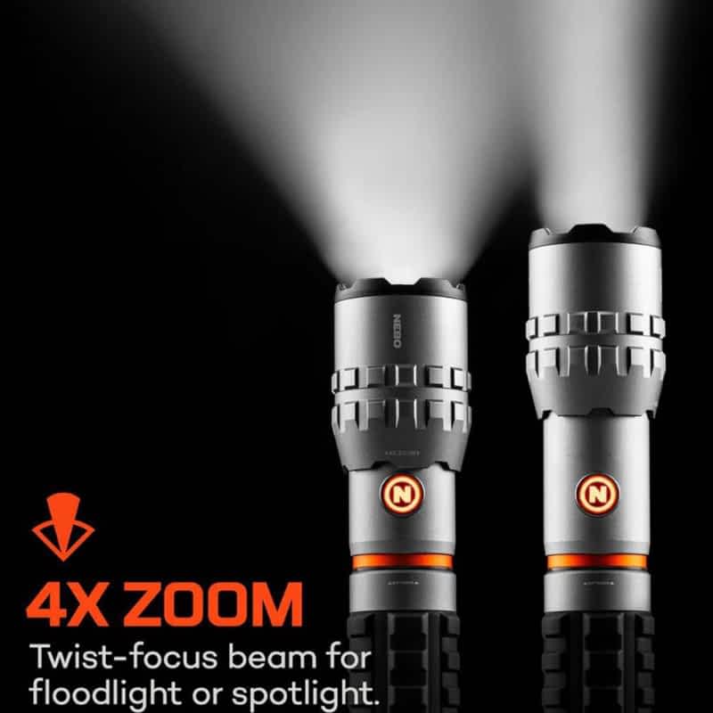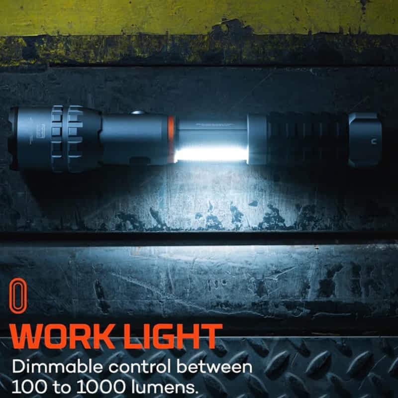 NEBO SLYDE KING 4K združuje dve funkciji v enem – močno svetilko s 4000 lumnov in 4-kratnim zoomom ter delovno luč C•O•B s 1000 lumnov. Obe luči imata možnost zatemnitve in pomnilnika moči, kar omogoča popolno prilagoditev svetilnosti glede na vaše potrebe. NEBO Slyde King 4k se ponaša s standardom IPX7, zato je vodoodporna in pripravljena na uporabo v zahtevnih razmerah. Poleg tega je opremljena z zmogljivo magnetno podlago, ki omogoča priročno prostoročno uporabo kjerkoli jo potrebujete. C•O•B Delovna luč se samodejno VKLOPI, ko je odprta in IZKLOPLJENA, ko je zaprta